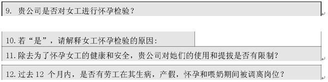 1. 貴機構(gòu)是否要求申請人提供如下有關(guān)信息?種族□ 是□ 否年齡□ 是□ 否宗教□ 是□ 否健康歷史□ 是□ 否政治傾向□ 是□ 否性傾向□ 是□ 否婚姻狀況□ 是□ 否身體殘疾□ 是□ 否懷孕狀況□ 是□ 否團體成員□ 是□ 否