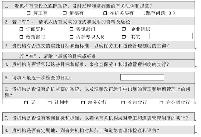 1. 貴機構(gòu)有否使用或正在設(shè)立任何管理制度,以保證勞工和道德條例規(guī)定的順利實行?